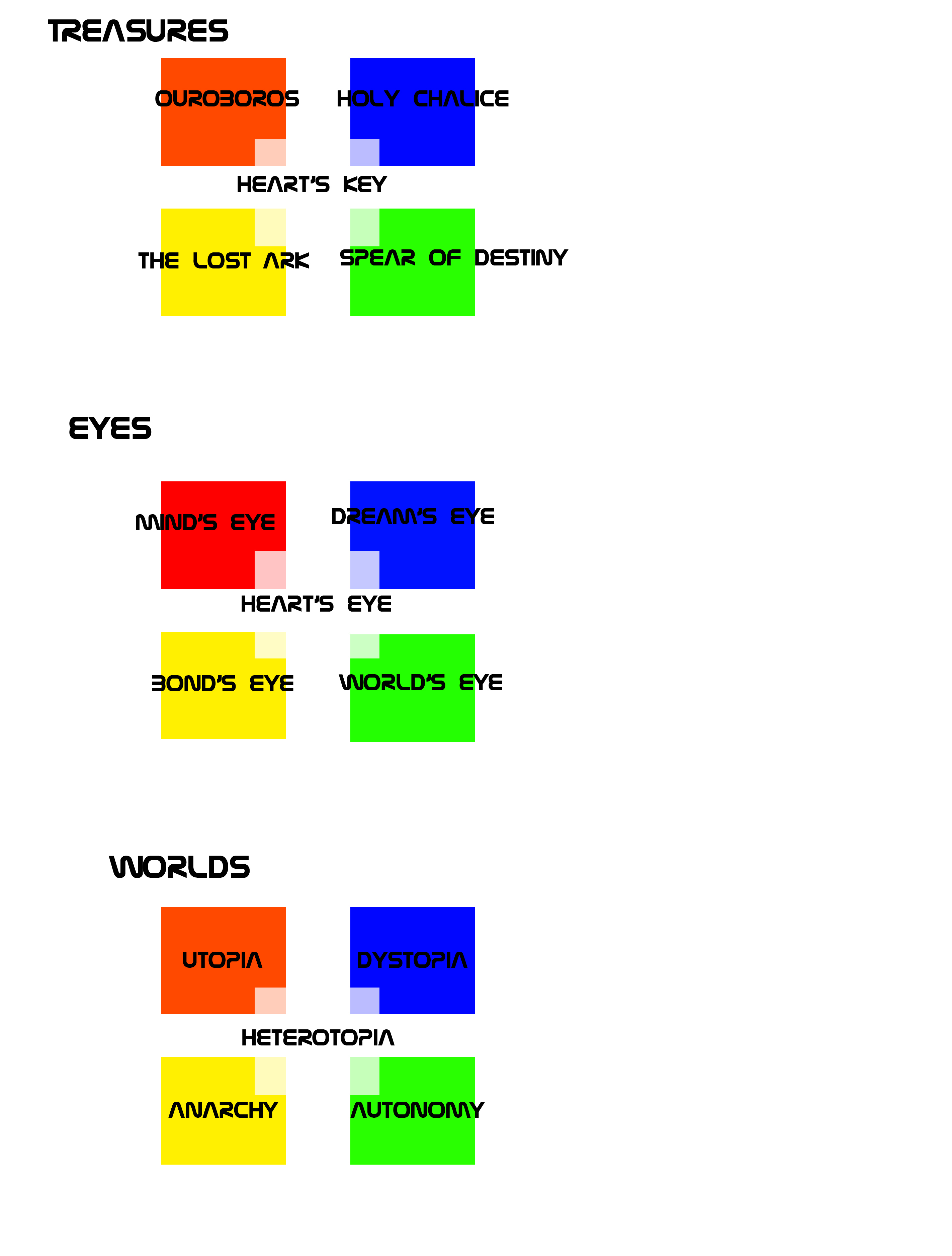 The treasures are all just a distraction. For the true treasure is the treasure combination the Key of The Heart – Granting the host’s true desires. The Hearts Eye is the most desired eye because it is a combination of the 4 eyes. The Eye to see potentials and past spirit/human nature. The narration follows the one who is called the Master over The Heart’s Eye. This is how it all begins, the gears are beginning to shift and our machine is in the movement towards a niche World.